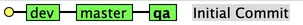 - Feature → QA → Dev : Features merge into qa first, then into dev after QA approval.